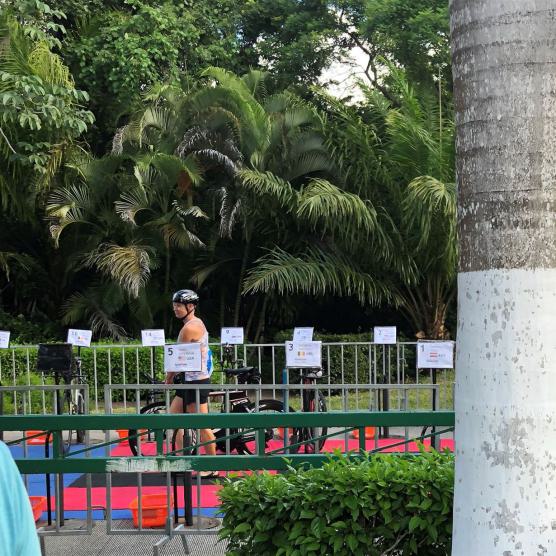 Mein Magen rebelliert, ich bin aber froh, dass ich das Schwimmen gut hinter mich gebracht habe. Raus aus den Schwimmsachen und rein in die Radsachen.