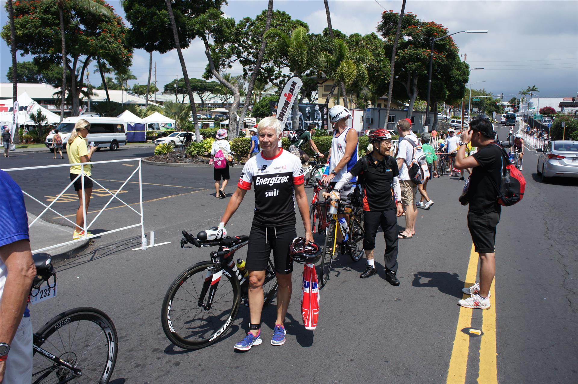 Der Count Down läuft, jetzt sind es nur noch 3 Tage bis zum Wettkampf. Wie bereits die ganze Zeit hat der Wecker wieder sehr früh geklingelt. Eine Tasse Kaffee, Frühstück spar ich mir vor dem Schwimmen, dann ab ans Pier. Irgendwie ist jetzt jeden Tag etwas mehr los. Chrissie Wellington verteilt am TYR Stand Bademützen und Beutel, hab ich mir natürlich auch geholt. Heute sind lediglich 30 Minuten schwimmen angesagt. Danach heißt es noch etwas die Szene beobachten und dann ab zur Registrierung. Um 9:00 Uhr öffnet das Büro, ich bin gleich dran. Die Registrierung geht relativ zügig. Ausweiss, einige Unterschriften, dann hat man schon seine Unterlagen. Jetzt kommt der Wettkampf immer näher. Im Anschluß an die Registrierung fahre ich noch einmal 1 Stunde Rad, die Wettkampfstrecke entlang, Wahnsinn was für Menschenmassen hier unterwegs sind. Um 14:15 Uhr ist die deutsche Wettkampfbesprechung angesagt. Im Prinzip immer das gleiche. Der Radabstand ist etwas größer, 10 Meter zum Vordermann, in den Raceunterlagen stand 7 Meter. Egal, darauf kommt es nicht an. Eine weitere Besonderheit ist noch, dass man die Startnummer erst auf der Laufstrecke tragen muss. Beim Rad ist es nicht erforderlich. War in Las Vegas auch schon so. Danach sind wir noch einmal kurz über die Expo geschlendert, macht ja schon um 16:00 Uhr zu. Danach ging es direkt nach Hause, den Kaffee im Lava Java haben wir uns heute gespart. Im Apartment haben wir noch kurz die Wettkampfunterlagen geprüft, alles okay. Danach gibt es nur noch gemütlich das Abendessen und ein relaxtes Ausklingen des Tages.