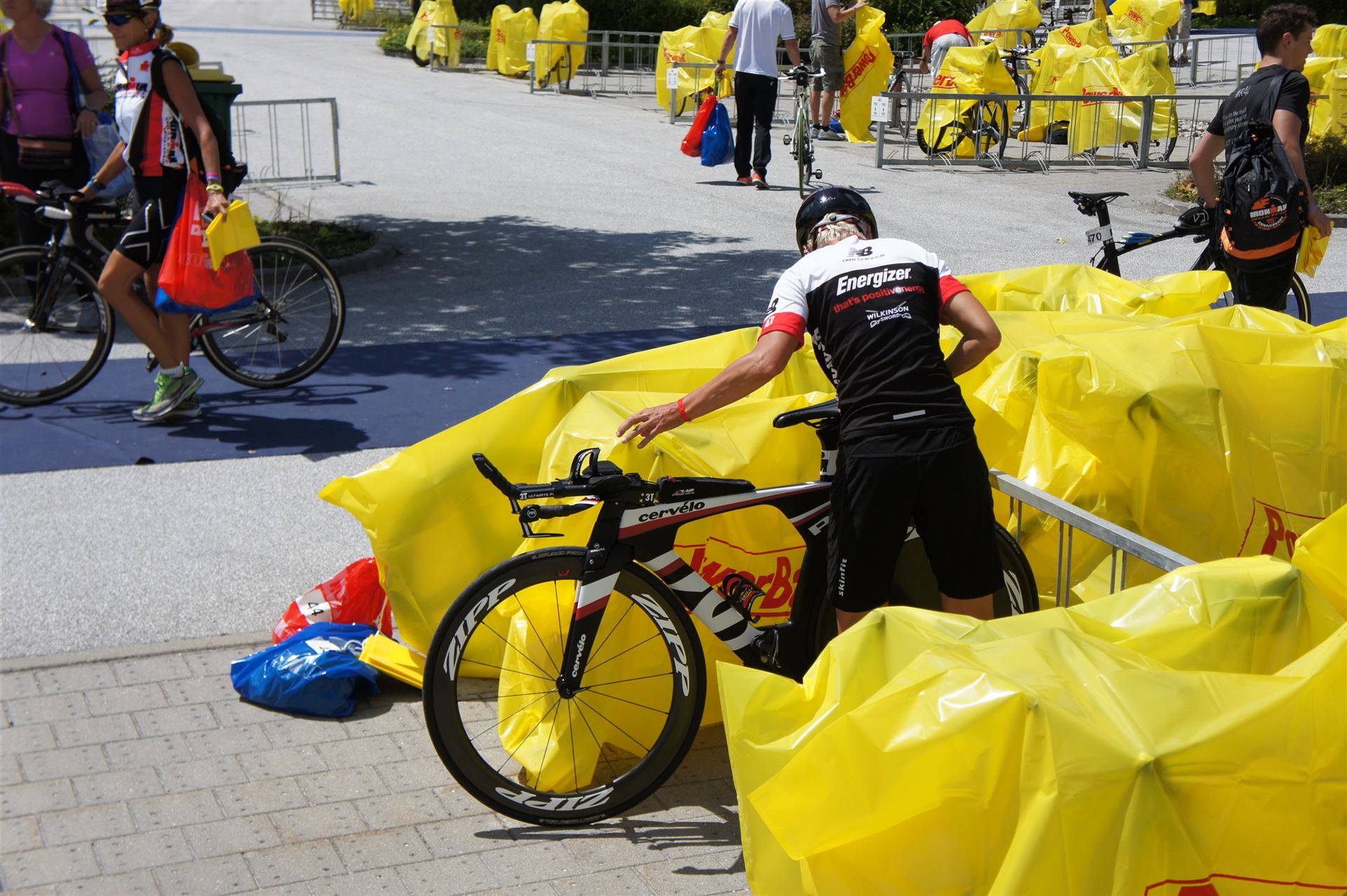 Ich bin geduscht, etwas essen kann ich an diesem Tag nichts mehr. Mein Rad sowie meine übrige Kleidung habe ich bereits aus der Wechselzone geholt. Es geht wieder zurück an die Finisherline. Die Stimmung ist gigantisch. Jeder einzelne Athlet wird von den Moderatoren und vom Publikum begrüßt. Der Zieleinlauf ist bis 00:00 Uhr geöffnet, danach gibt es noch ein Feuerwerk.