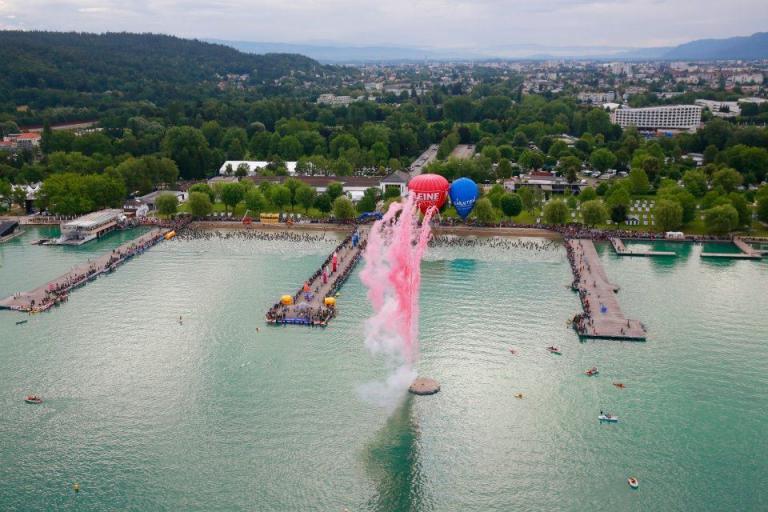 Die ersten 3.000 Meter werden in U-Form im Wörthersee und danach die restlichen 800 Meter im Lendkanal geschwommen.