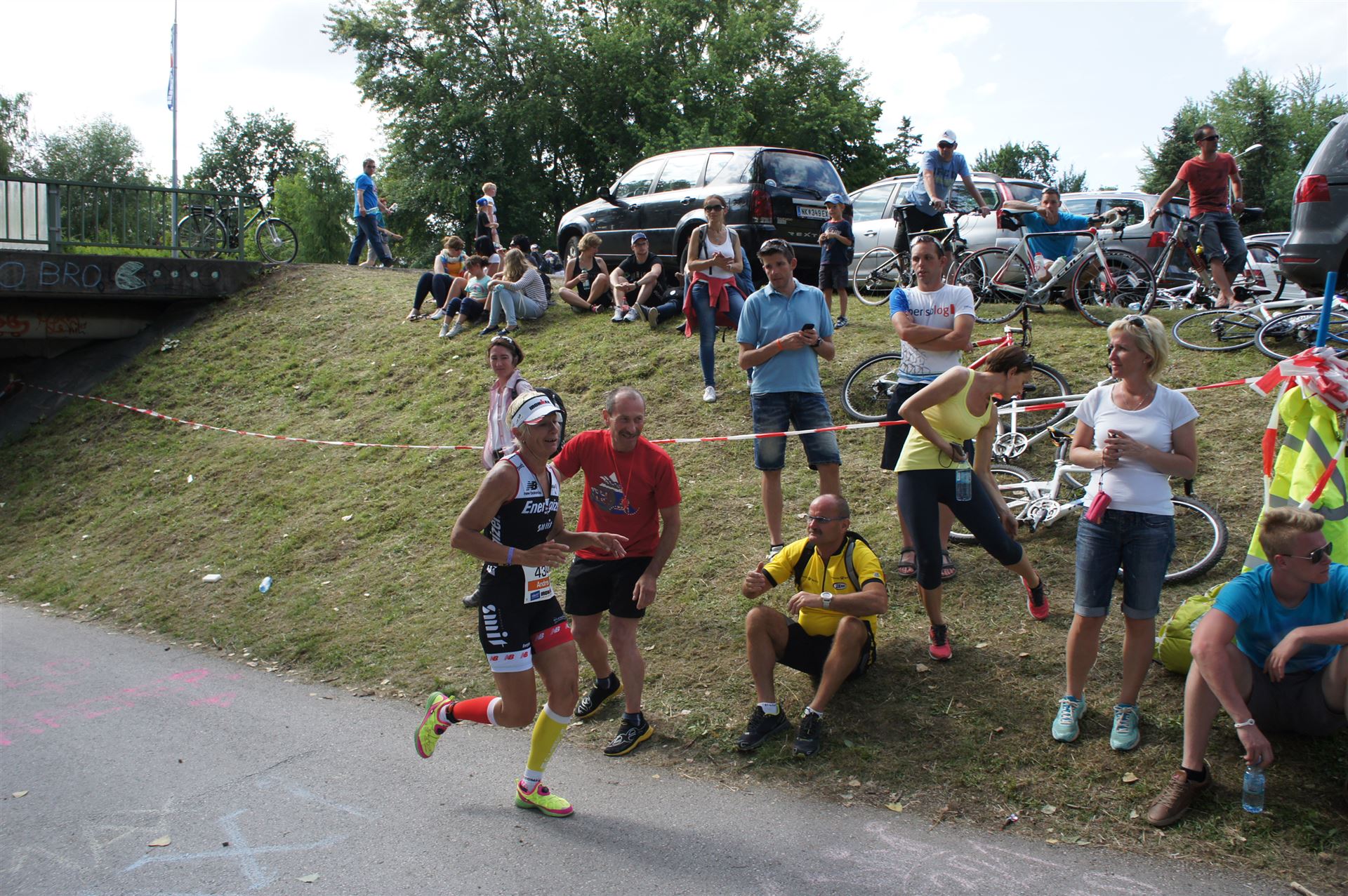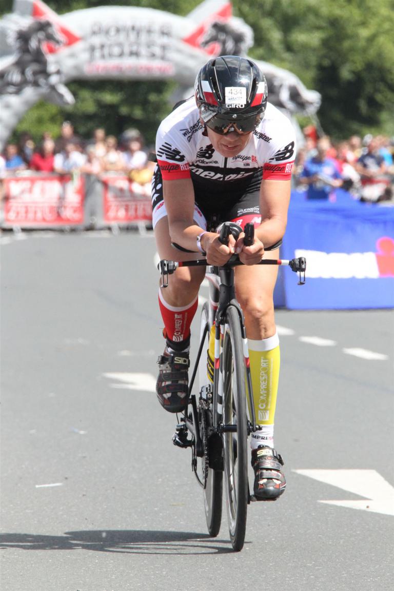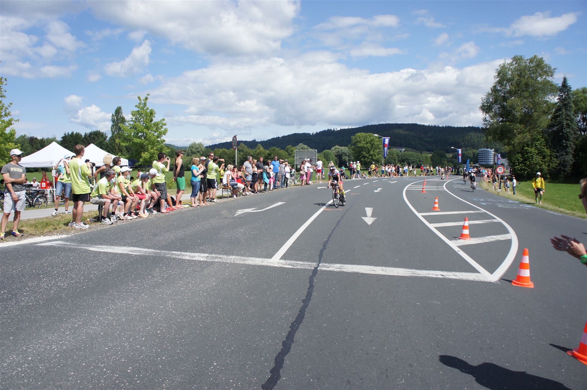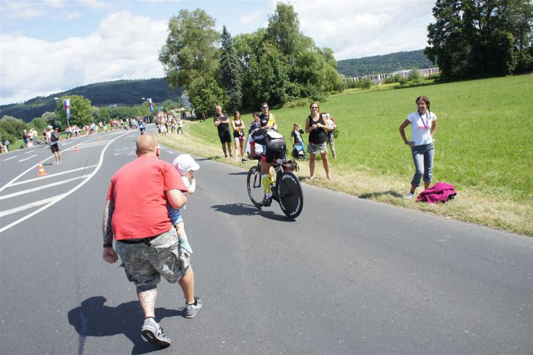 Auch hier gibt es viele Fans an der Strecke. Der DJ feuert mich mit der Bemerkung "Ironlady" an, ich kurble den Berg hoch.