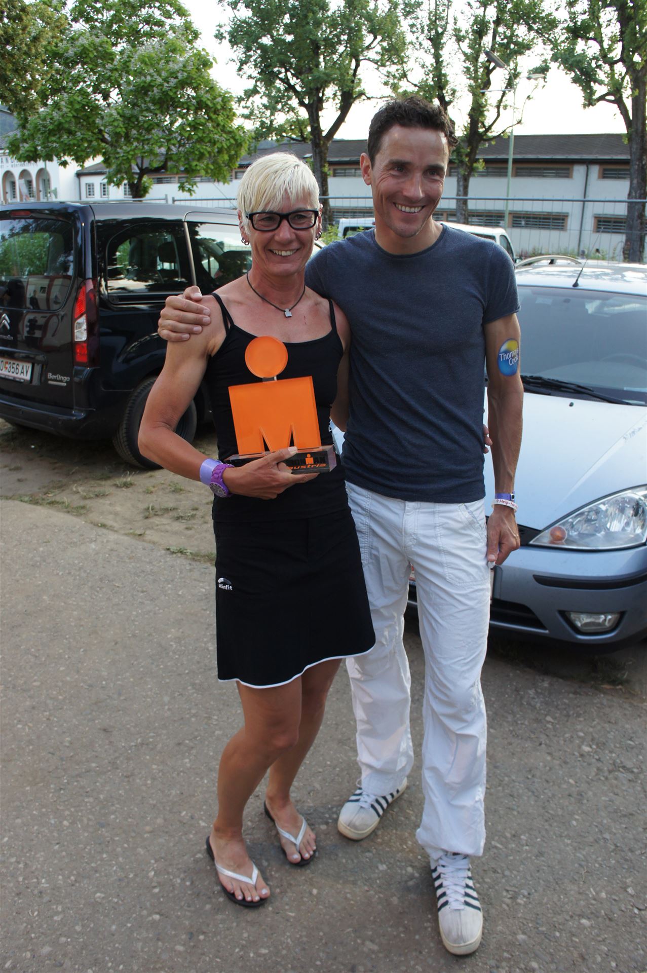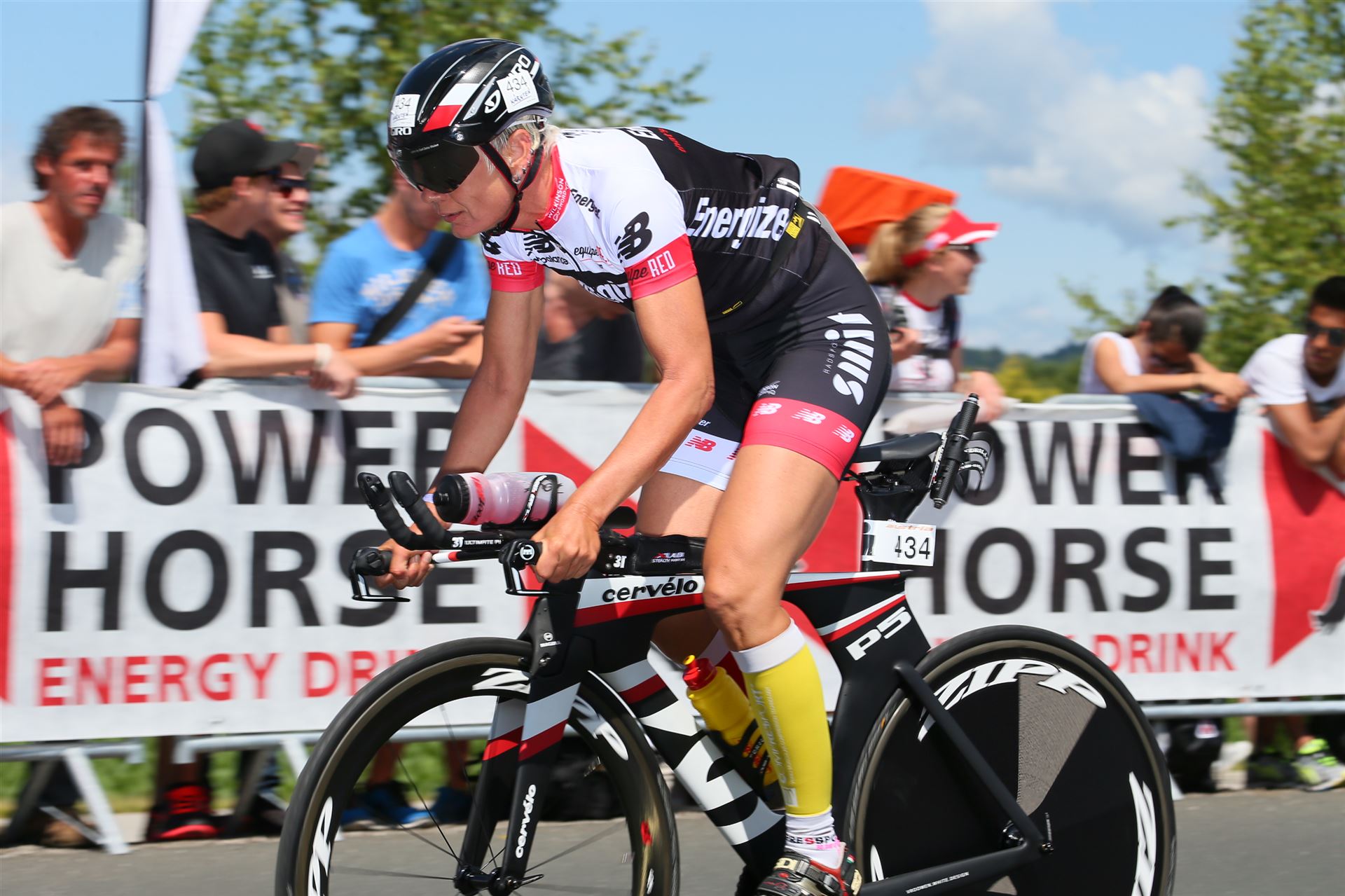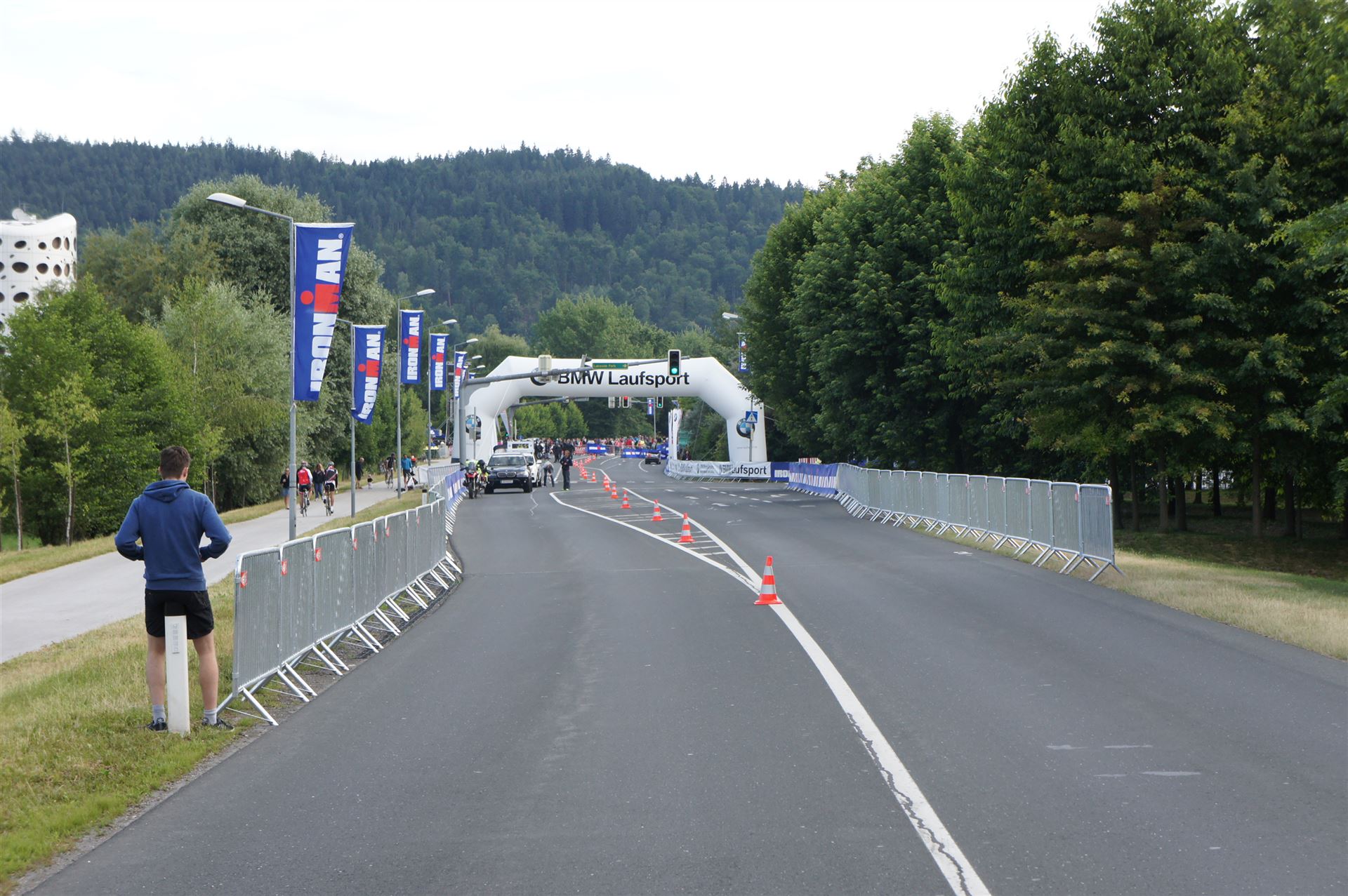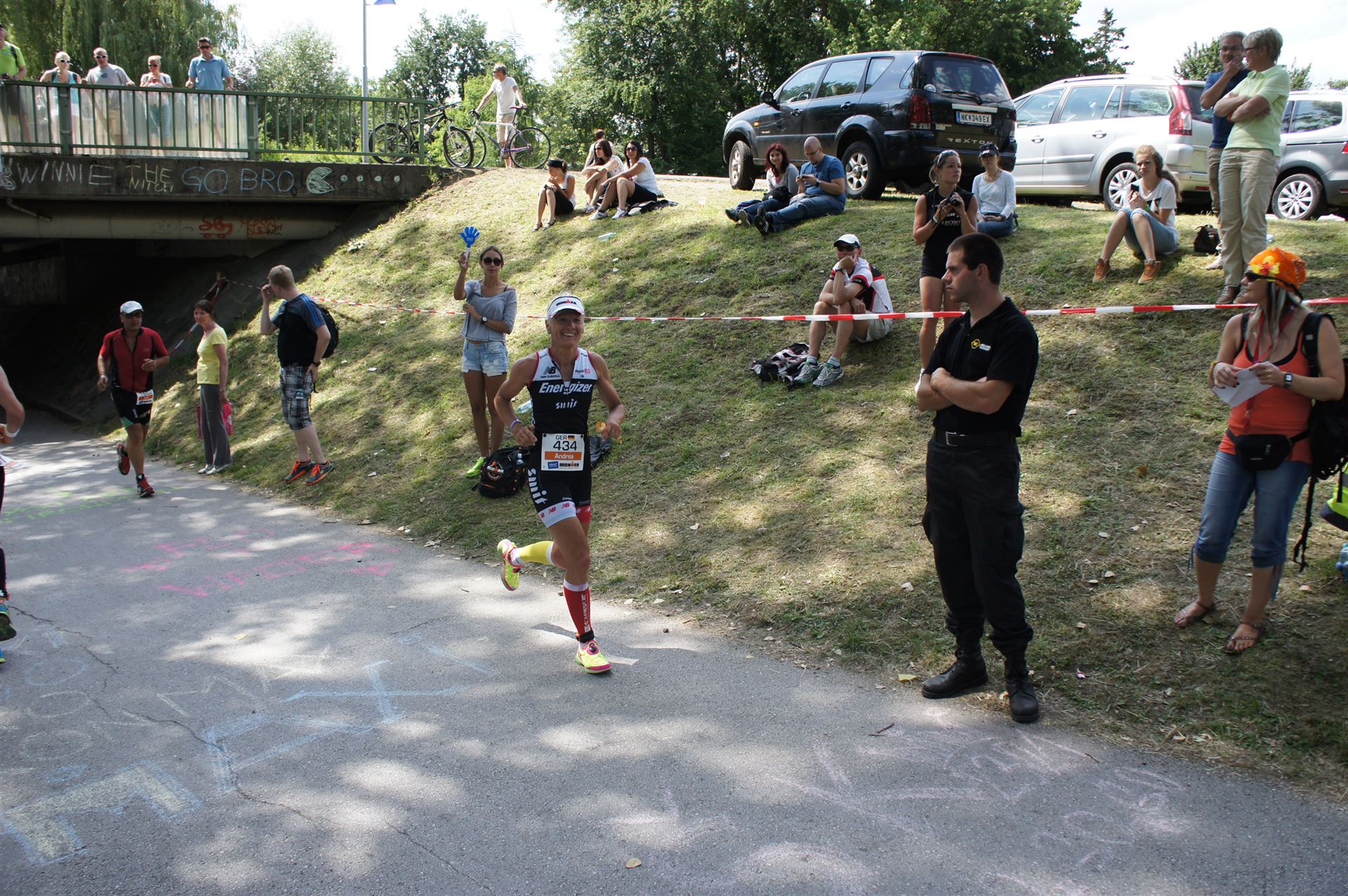 Auch hier gibt es viele Fans an der Strecke. Der DJ feuert mich mit der Bemerkung "Ironlady" an, ich kurble den Berg hoch.