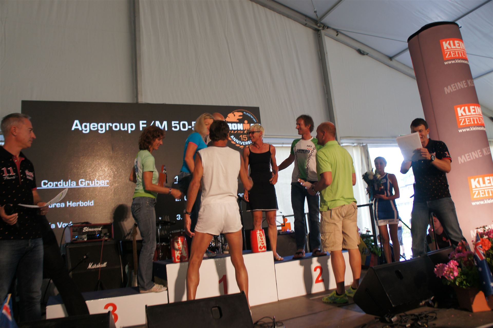 Nach insgesamt 10:49:40 Stunden durchlaufe ich als zweite in meiner Altersklasse W50, mit dem berühmten Satz YOU ARE AN IRONMAN das Ziel in Klagenfurt.