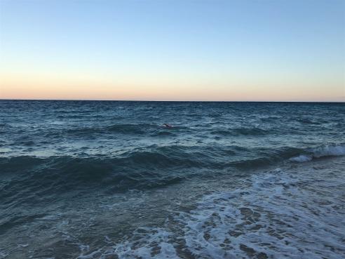Ich glaube ich bin noch nie bei solch einem Wellengang gekrault. Angeblich ist so ein starker Seegang die Ausnahme, ich hoffe, dass es am Sonntag angenehmer wird.